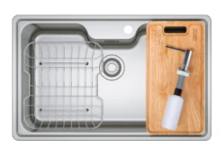 Cuba Bell com Acessórios de Sobrepor Medindo 81x51cm Franke. Toda em aço inox escovado a Cuba Bell 610-81 Franke, foi desenvolvida para ser o centro da cozinha devido à multifuncionalidade e design exclusivo. Ideal para o preparo de alimentos e utilização de grandes utensílios. Com um sistema exclusivo de Fixação (Fast Fixing) de fácil instalação, esta cuba tem vedação perfeita. Possui ladrão oculto que oferece maior segurança contra transbordamentos. Possui acessórios opcionais exclusivos que se encaixam perfeitamente na cuba proporcionando praticidade e versatilidade no preparo dos alimentos.
